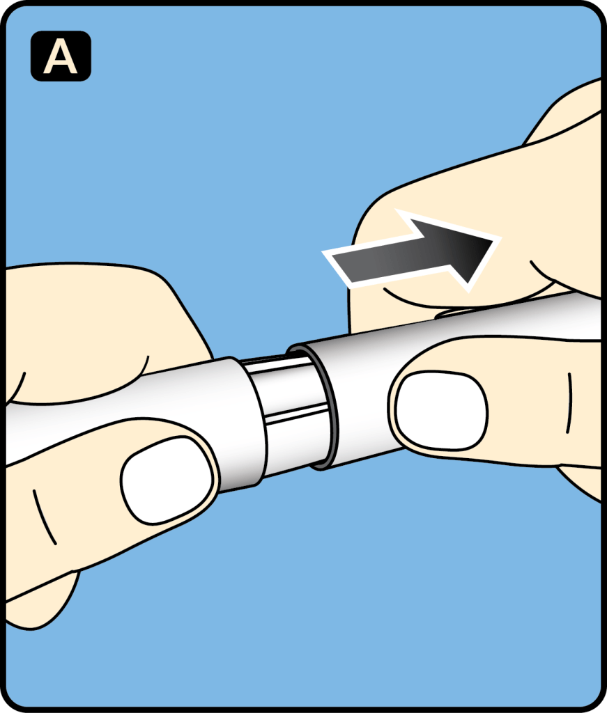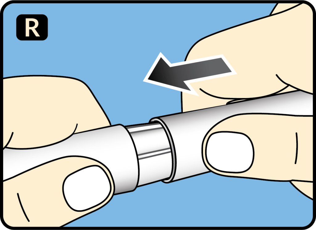 1. Pull off the inner needle cap and throw it away.