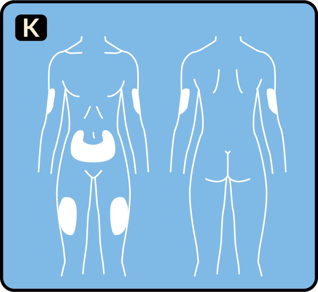 1. Choose your injection site and wipe the skin with an alcohol swab. Let the injection site dry before you inject your dose (See Figure K).