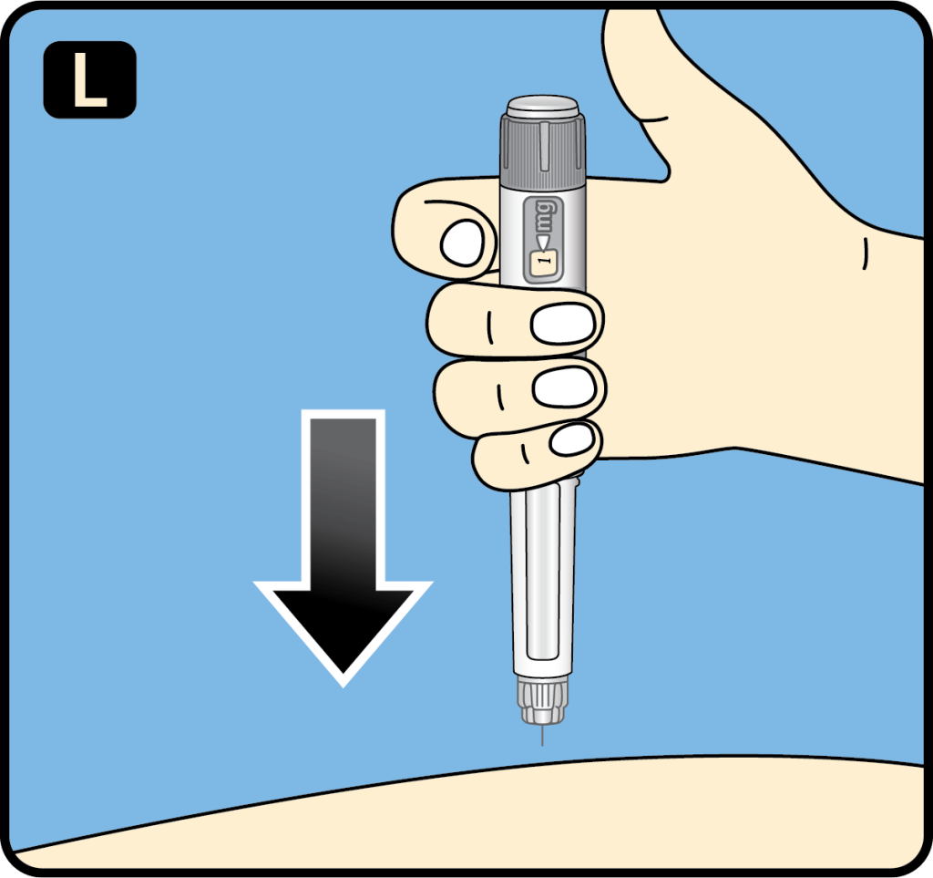 1. Insert the needle into your skin as your healthcare provider has shown you.