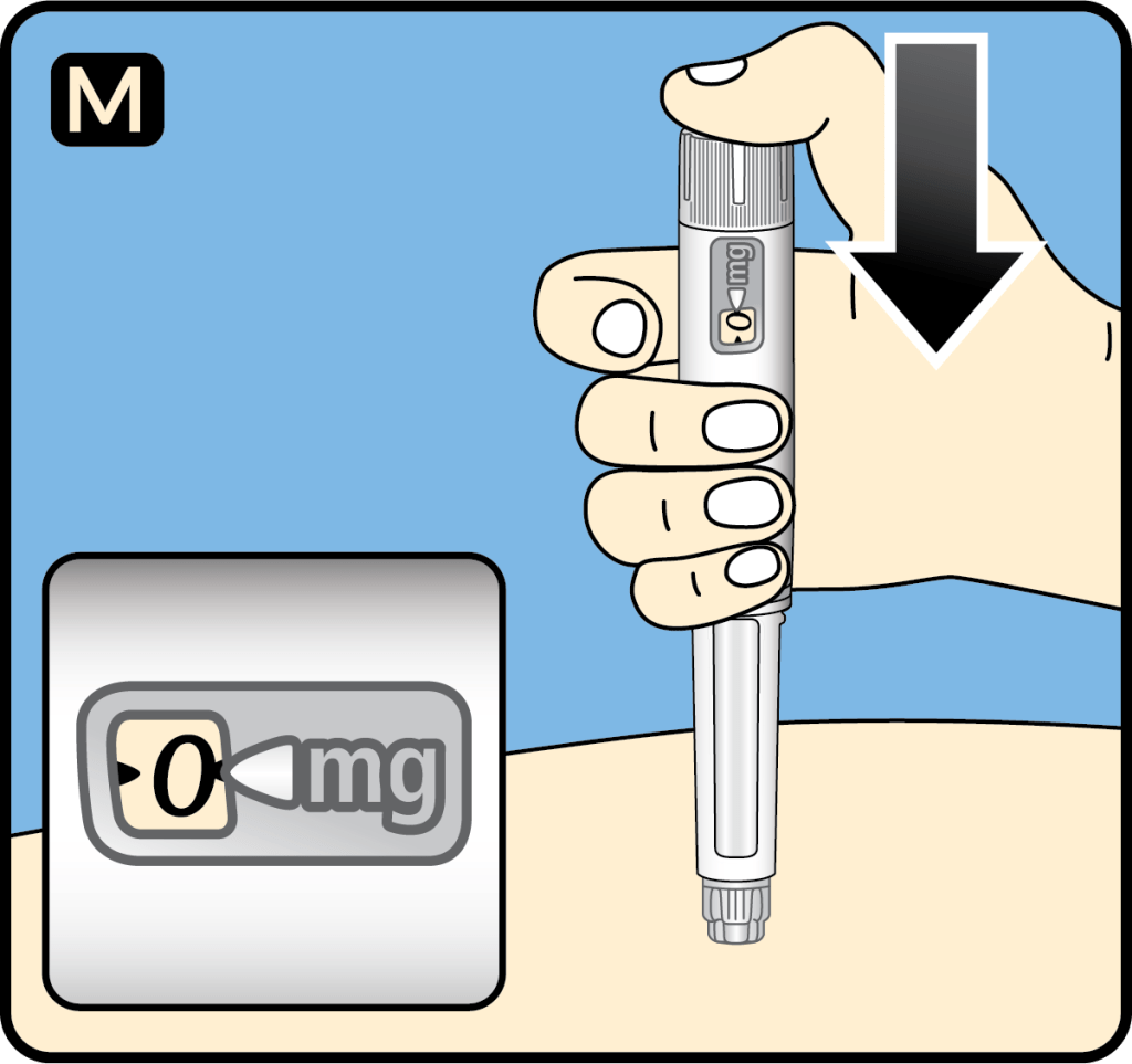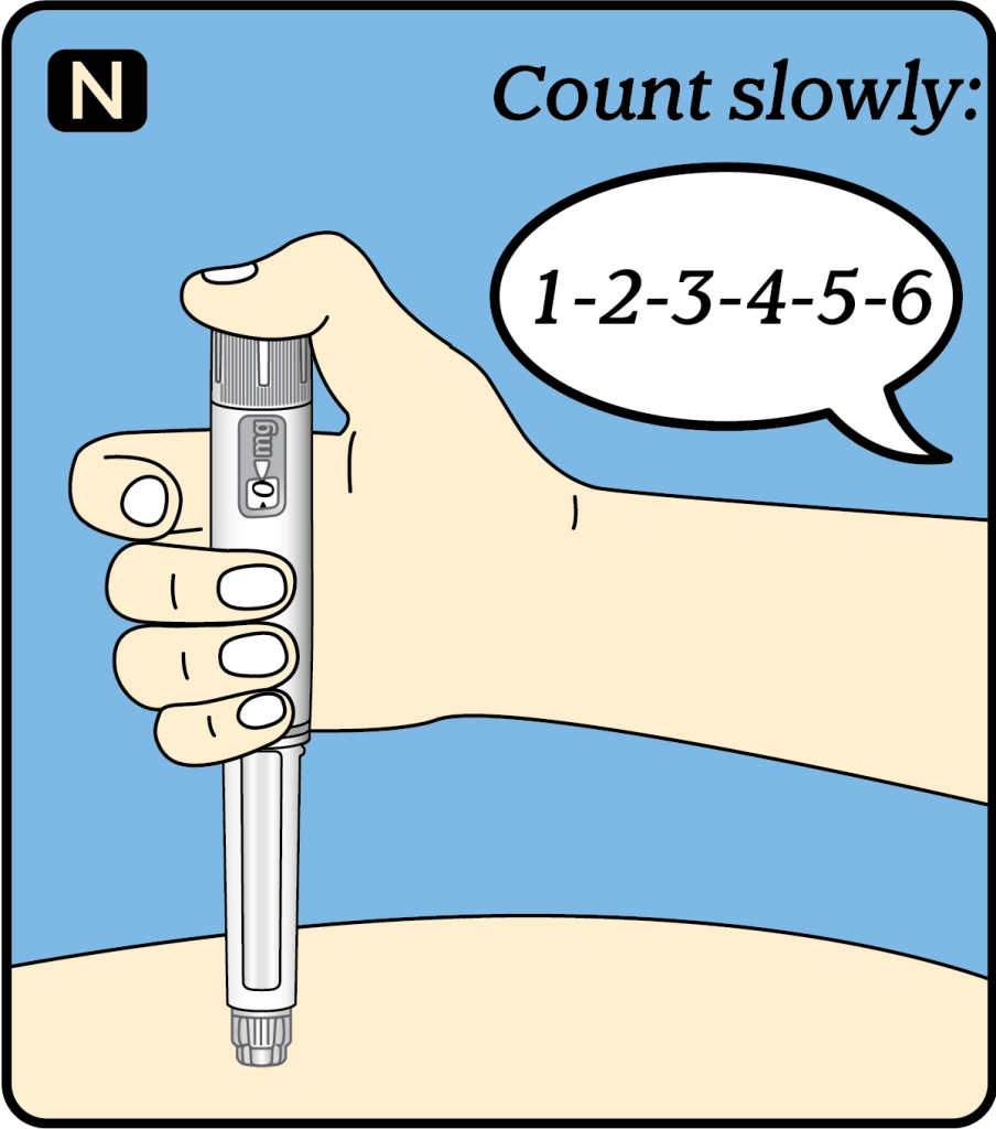 1. Remove the needle from your skin. You can then release the dose button.