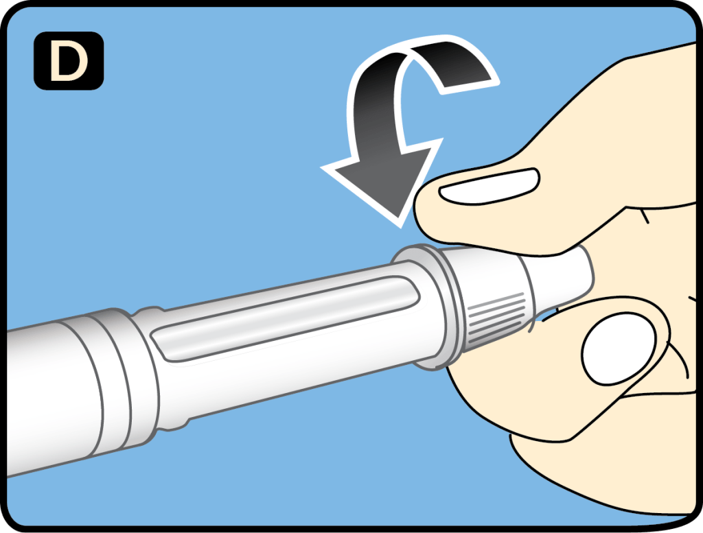 1. Push the needle straight onto the pen. Turn until it is on tight.