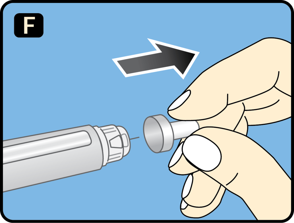 2. Never try to put the inner needle cap back on the needle. Always remove the needle from your pen.